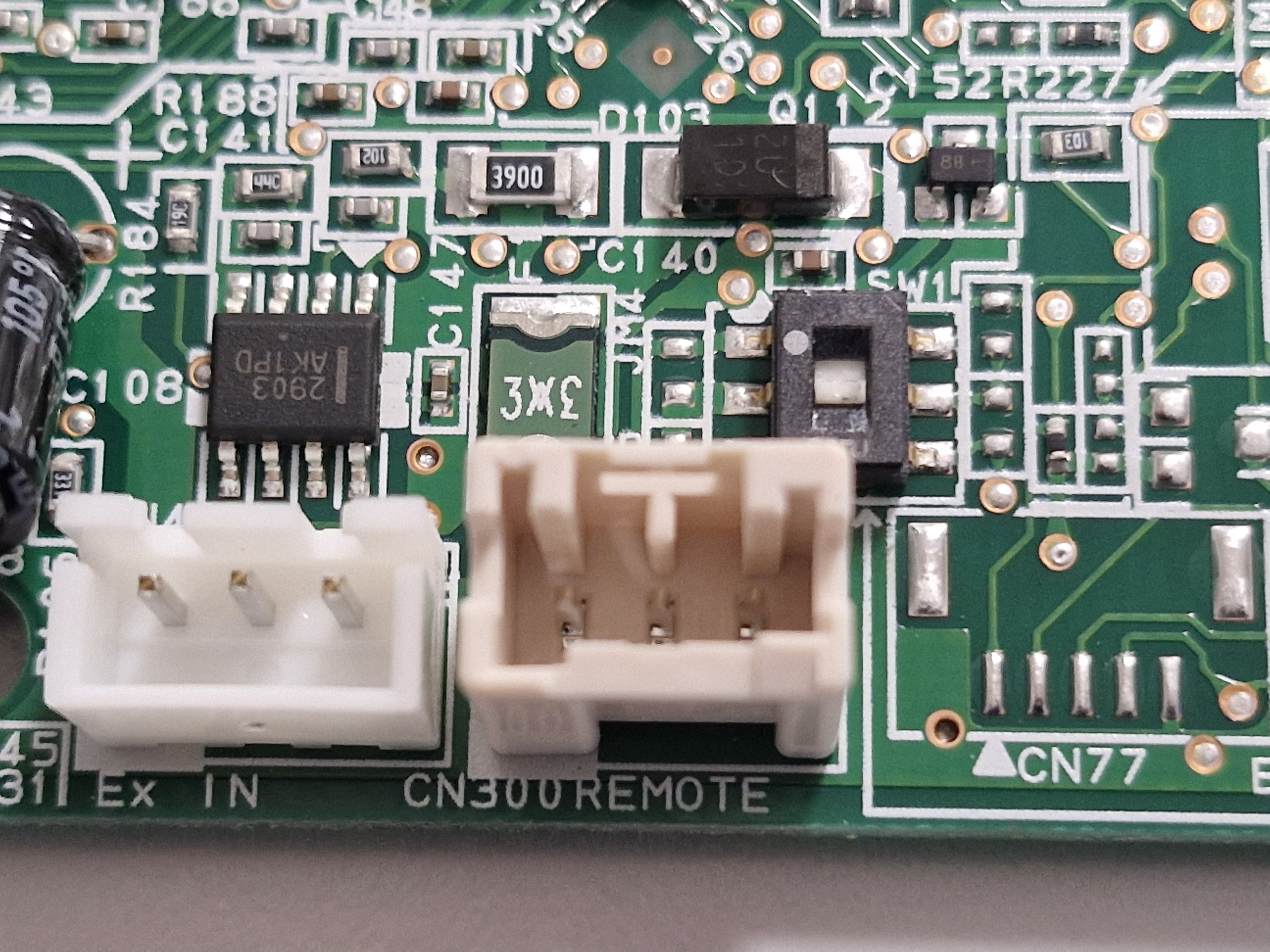 The actual location on the control pcb can be seen here close to where the remote control plug is on the pcb